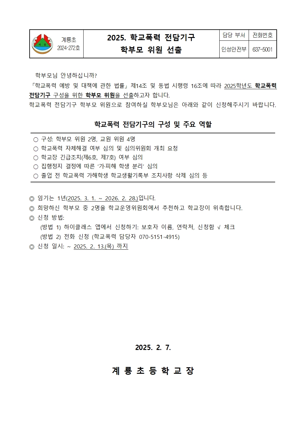 2025. 학교폭력 전담기구 학부모 위원 선출